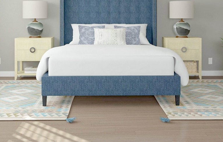 فرش کوچک طبیعی رنگی که در زیر تخت قرار دارد، باعث میشود، یک منطقه مناسب را ایجاد کند که پا بعد از بلند شدن از تخت خواب روی آن قرار گیرد و باعث میشود که سردی را از کفپوش احساس نکنید، همچنین باعث ایجاد زیبایی در دکوراسیون میشود و با طرح کلی رنگ اتاق مطابقت دارد.