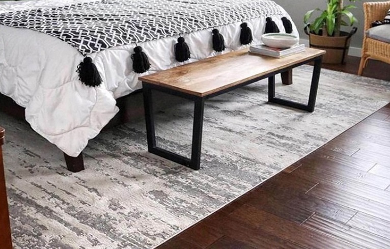 در مواردی که در پایین تخت خود نیمکت یا عسلی دارید. ممکن است، بخواهید فرش شما چند سانتی متر از تخت خواب شما فراتر رود. با این محل قرار دادن، فرش خود را از وسط تخت خواب خود شروع کنید و مطمئن شوید که آنقدر فراتر از تخت شما قرار میگیرد. که در هنگام نشستن روی عثمان یا نیمکت خود جایی برای قرار دادن پا داشته باشید.